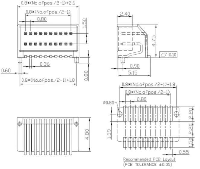 0.8mm Pitch Single Slot BTB Right Angle Female Connector (BS080RA-0475)